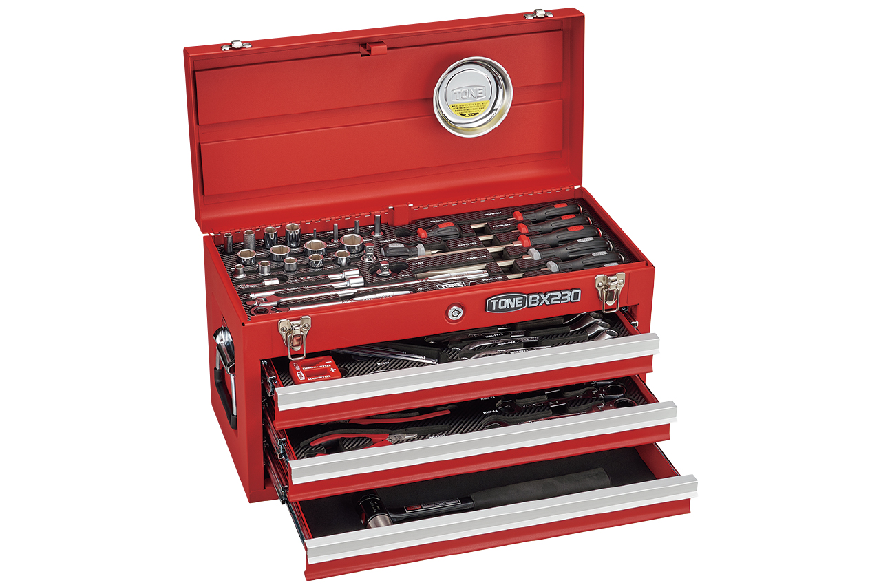 バイク・クルマ整備に特化した充実のチェストタイプのツールセット。TONEが考える必要工具が詰め込まれている。バイクの基本整備をするにあたり一番無駄のない、かつ充実したセットだ