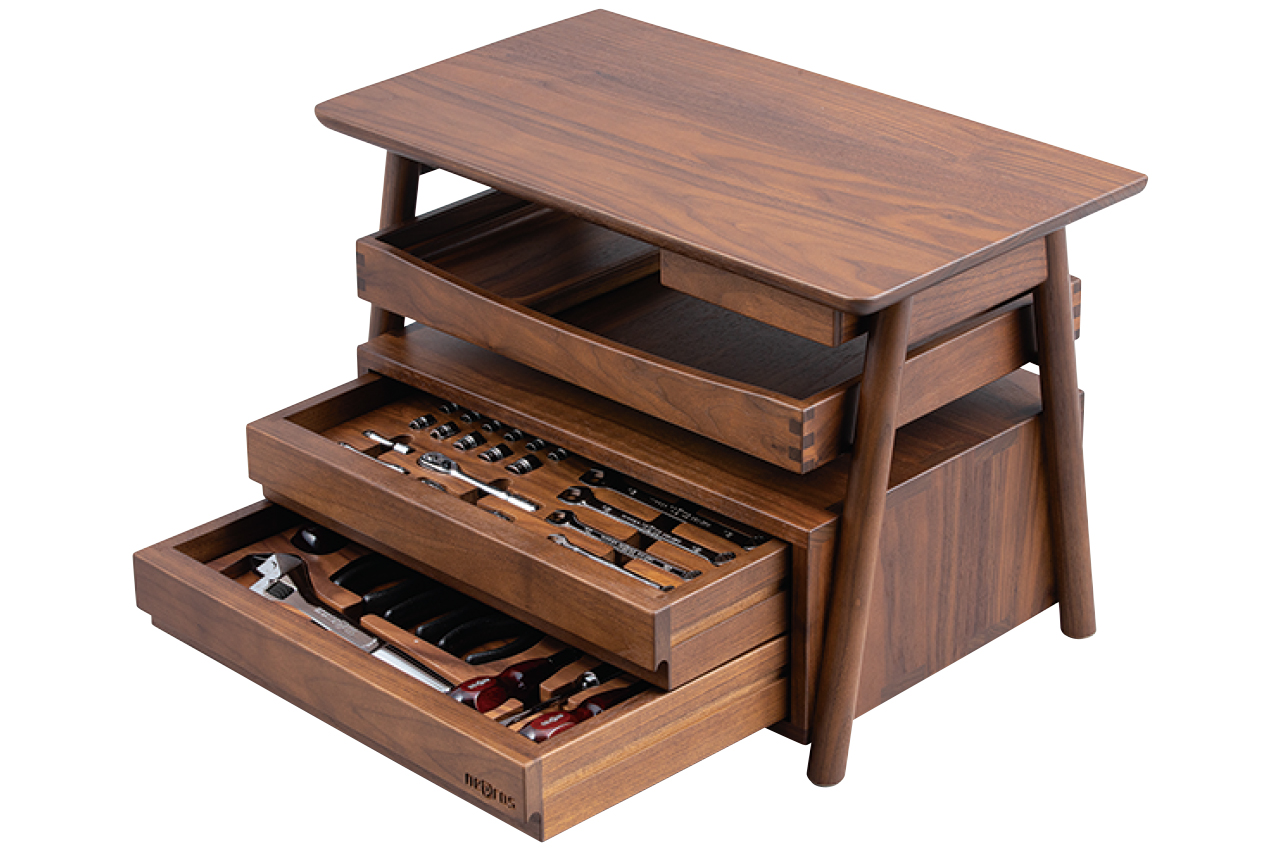 ウォルナット材の美しいチェストに、機能美を極めた29点の精密工具を収めた特別なセット。手に取った瞬間の質感から整備時の操作感まで、道具としての信頼性と所有する喜びを両立。ガレージを上質な空間へと引き上げる、使っても飾っても満足できる逸品